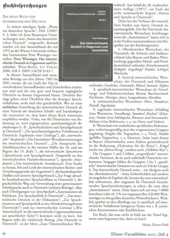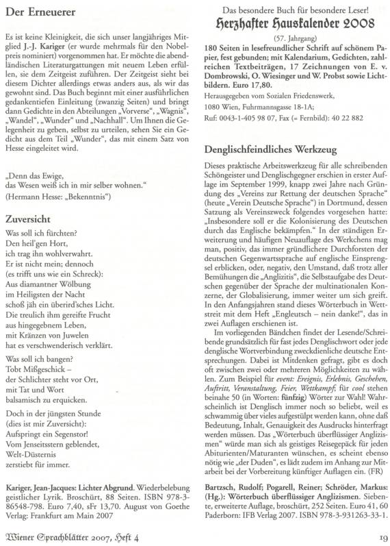 Wiener Sprachblätter Dezember / Julmond 2007 Heft 4 S. 18 und 19Abdruck mit freundlicher Genehmigung der Wiener Sprachblätter